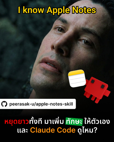แชร์วิธีสร้าง Agent Skills ให้ Claude Code และ OpenCode สามารถอ่าน เขียน และจัดการ Apple Notes ได้ผ่าน AppleScript แทนการใช้ MCP Server พร้อมข้อดีข้อเสียและวิธีแก้ปัญหา path