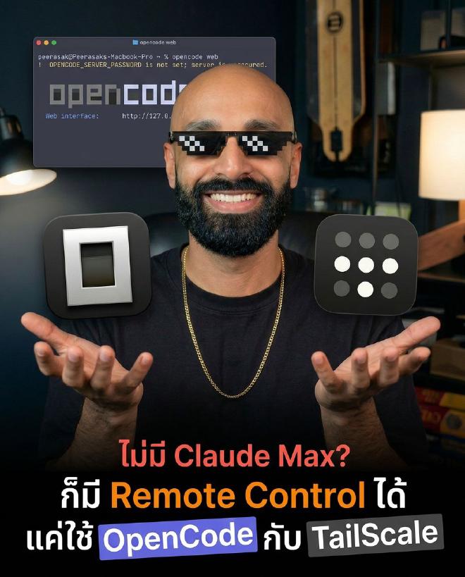 ไม่มี Claude Max? ก็มี Remote Control จาก OpenCode + Tailscale